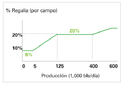 Adicionalmente la Ley 756 de 2002 establece descuentos específicos para petróleo y gas costa afuera (40%), gas (20%), y crudo pesado (25%). El pago de las regalías se realiza mensualmente con base en el valor bruto de la producción de cada campo.