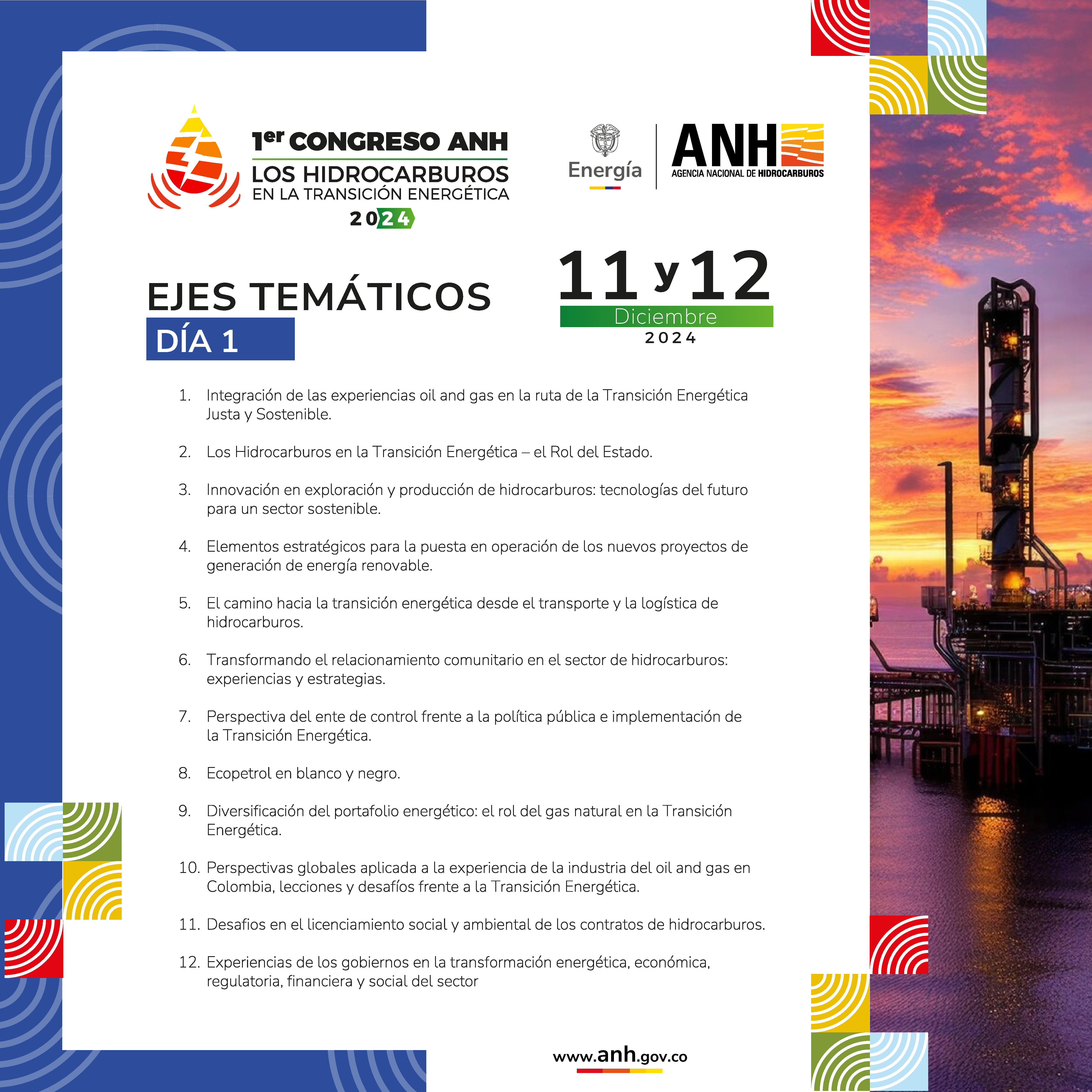El propósito de este encuentro es analizar el papel de la industria de los hidrocarburos en el marco de la transición energética justa y segura fundamental para Colombia. Así como su aporte en la diversificación de la matriz energética, con miras a lograr una descarbonización progresiva de las industrias productivas, y de esta manera, continuar aportando al mejoramiento de la calidad de vida de la comunidad mundial y a la mitigación de los gases efecto invernadero.