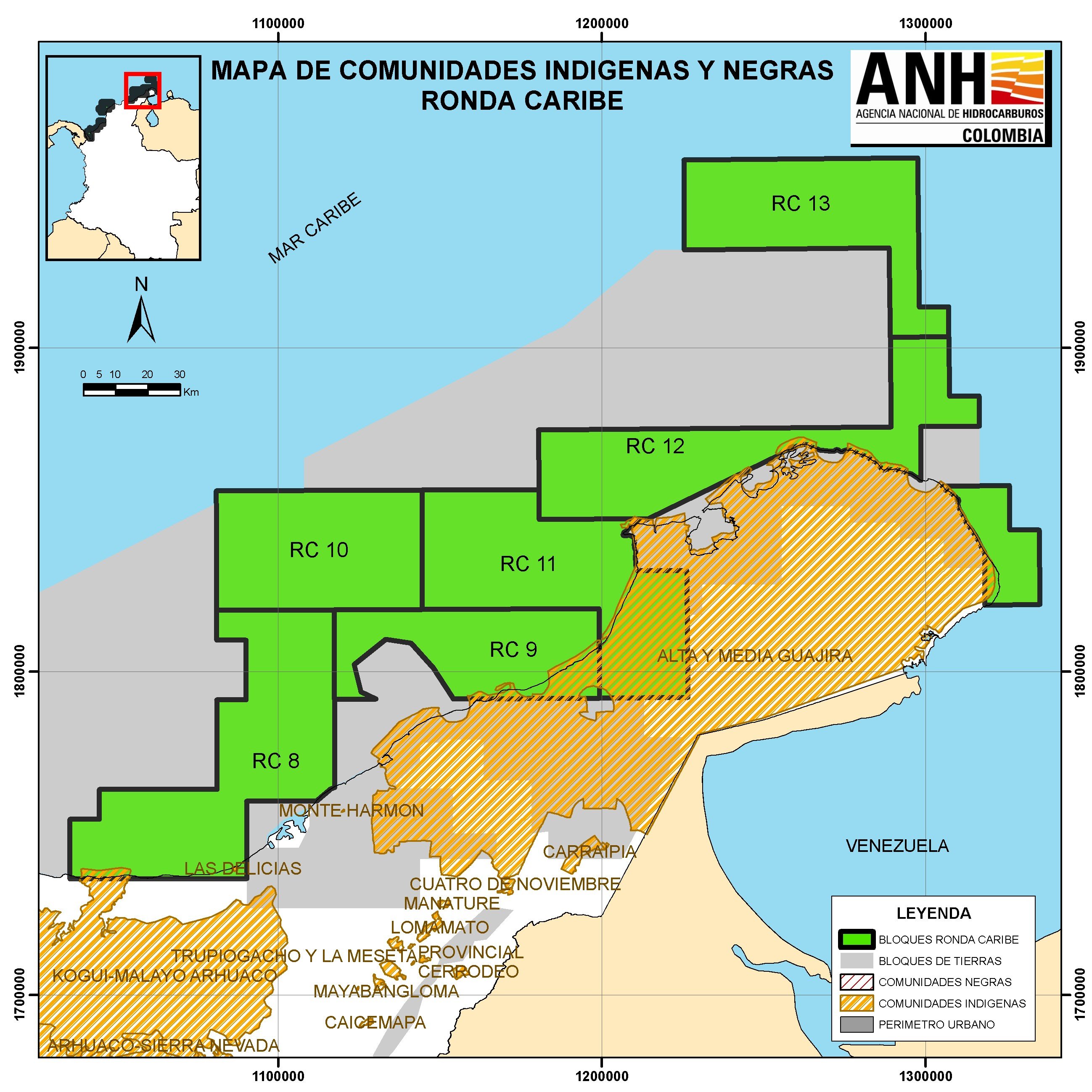 La ANH está ofreciendo 13 bloques en la Ronda Caribe 2007, categorizados así:
